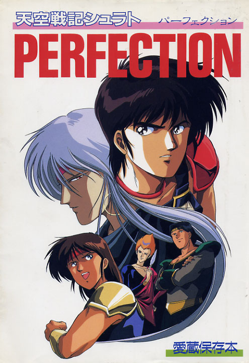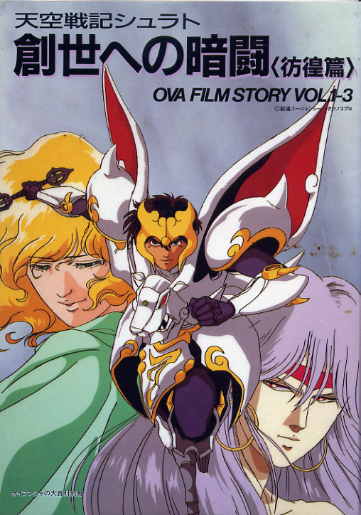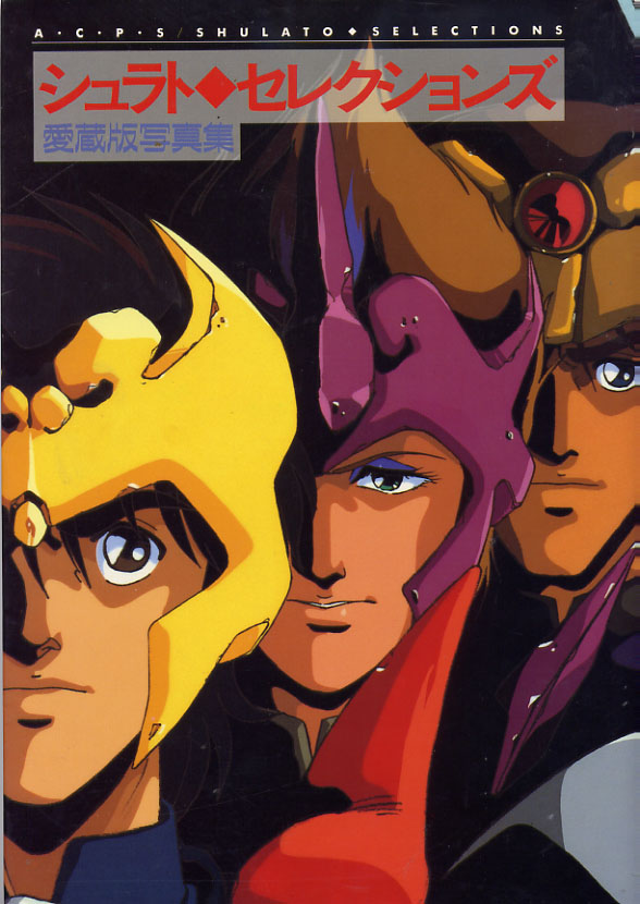 Another book not specifically about Shulato, but that has some related content. This fangirl-targetted book catalogs some of the male characters in some 1990 OAVs. It has screenshots and bios of Shulato, Gai, Reiga, Hyuga and Ryouma (poor Kuuya and Dan always get the shaft) and a B/W section of background info on the anime. The screenshots are all from the TV series. This was published before the OAVs were released, so the videos it refers to are the "Tenkuukai Memorial" videos.