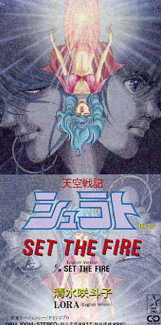 Set the Fire CD single Date: 1989 Serial number: 091X 10014 A CD single of Set the Fire, sung by Shimizu Satoko. The b-side is an english version of the song sung by LORA. The liner notes have a short bio of Ms. Shimizu. |