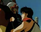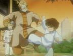 Back to the present. Shulato is still attacking and Gai is still avoiding all his attacks. Shulato wonders why Gai never does anything the direct way. Flashback to when they were in middle school. Shulato and Gai are walking together in a shopping center when they hear a women scream that she's been robbed. They see the robber heading toward them on a motorcycle. Shulato immediately starts chasing after him, but Gai heads down a side street. The robber turns down an alley, Shulato still hot on his tail. Gai appears in the motorcycle's headlights. The robber yells for Gai to get out of the way, but Gai knocks him off his motorcycle and retrieves the woman's purse. Back to the present. Shulato remembers that his grandfather once said that a match between him and Gai would almost certainly end in a draw, but he is determined to win this fight. Outside the arena, lightning strikes and a storm blows in.