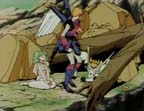 Gai attacks again, and Shulato tells him to quit joking around. As Gai is about the strike again, Lakshu grabs his arm and says it's unfair for him to attack someone who's unarmed. She tells Shulato that if he uses his Shakti, he'll be strong enough to fight. Gai effortlessly throws her at Shulato, knocking them both down.