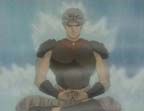 that flows from the top of Tenkuuju (ouch!). He is meditating, apparently