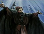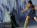 Meanwhile, Indrah comes to see Vishnu. Vishnu asks if anything happened. Indrah says that an Asura spy has gotten into the palace, and gives her a crystal ball in which she supposedly can see the whole story. She see Gai in the ball. As she's looking, Indrah begins a spell. Vishnu drops the ball and it shatters. She realizes the spy is actually Indrah! Indrah continues the chant, and Vishnu starts to turn to stone. She calls to Hyuga telepathically. Hyuga hears her and comes running.