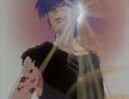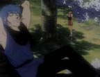 Flashback. Marichi is lying in a field of flowers, whistling. Renge asks why he called her there. Marichi says he loves her. Renge thinks he's joking, and turns to leave, but he insists he's serious. Renge says that she is a warrior and she doesn't need love. Marichi doesn't believe it. He tells her he's going on a journey and won't get in the way of her training any more. A snake comes up behind Renge, but Marichi throws a dagger at it before it can hurt Renge. When Renge turns to look, Marichi is gone. She stands alone in the field, with pink flower petals blowing around her.