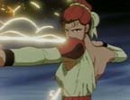 Nirihari fires Sohma blasts at Reiga, but he avoids them easily. Eventually, Reiga jumps over Nirihari's head and takes him by surprise, holding the point of a feather against his neck. Reiga says he won't let Nirihari get away with using the things they hold dear. Nirihari suddenly changes his tune and begs for forgiveness, saying he was tricked by Indrah. Reiga is unsure whether or not to believe him, and Nirihari takes advantage of his hesitation, knocking him into a statue with a Sohma blast.